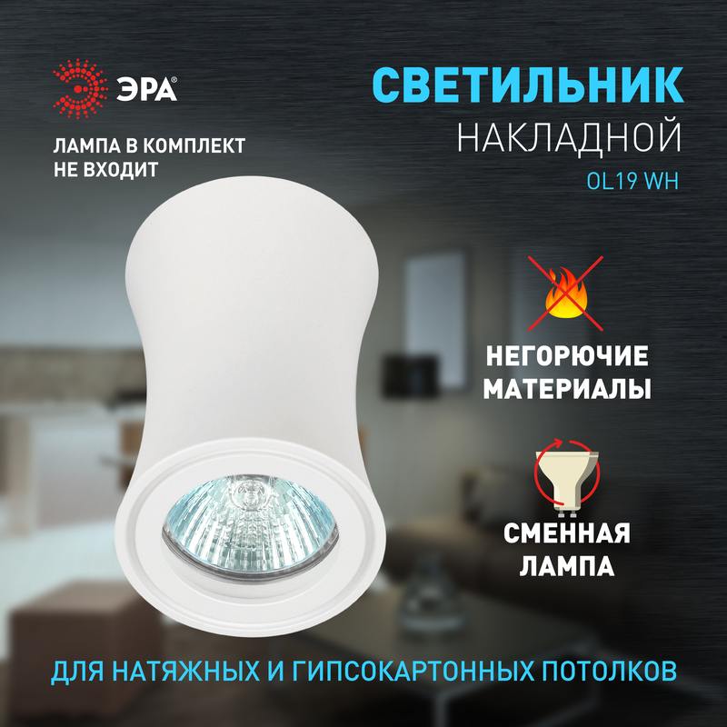 Характеристики Светильник настенно-потолочный спот ЭРА OL19 WH MR16/GU10, белый: