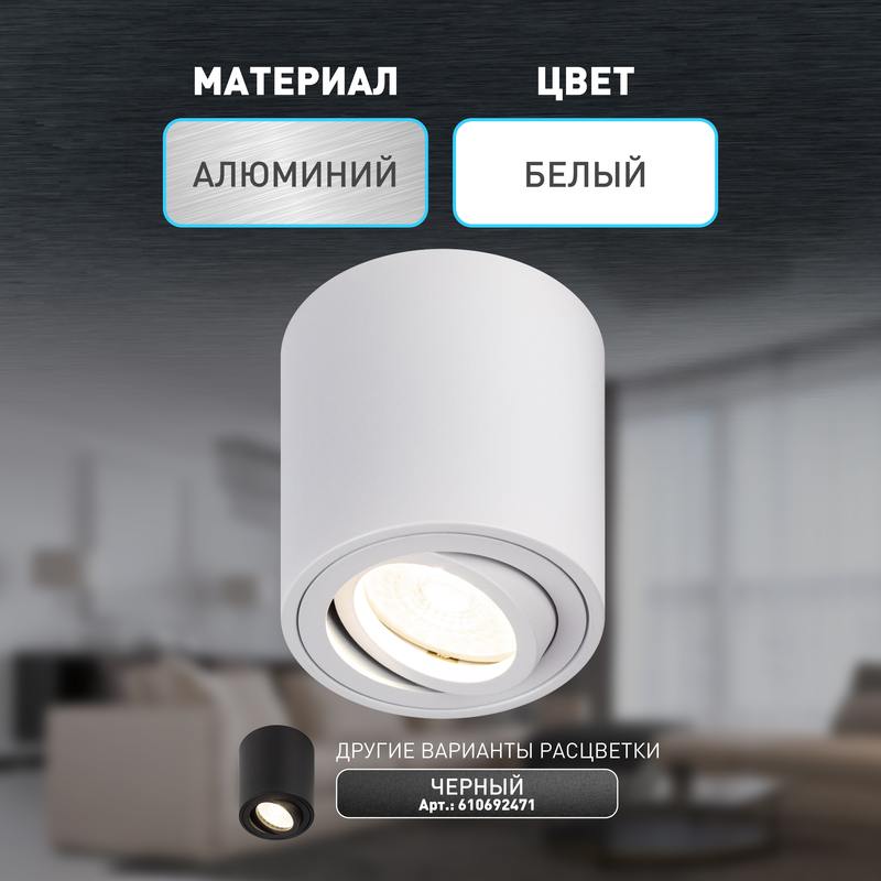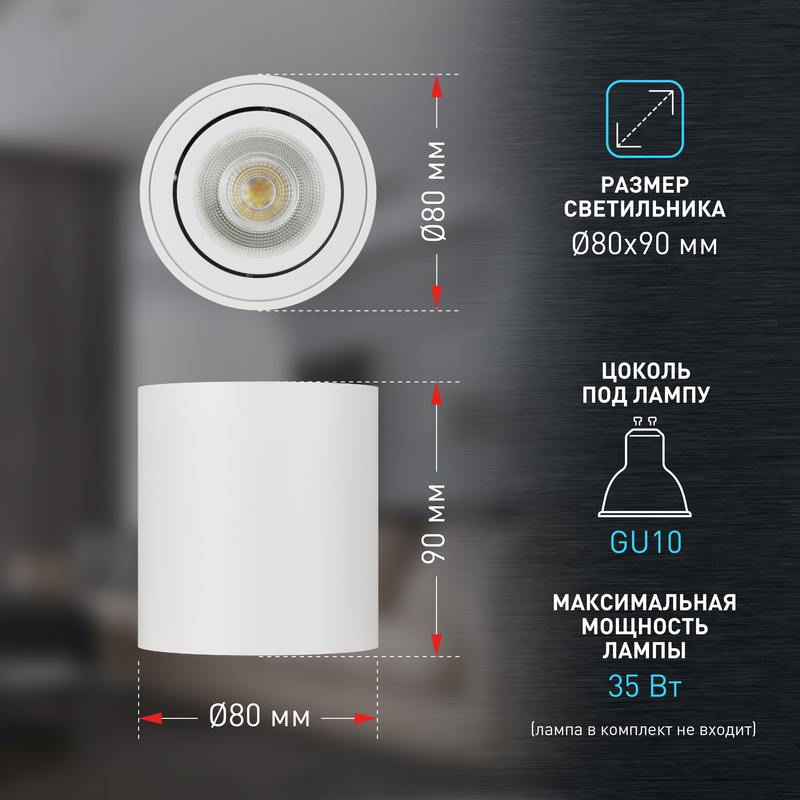 Накладной светильник OL21 WH новый популярный элемент декора в современном помещении. Поворотный механизм позволяет создавать дополнительные световые акценты. Подходит как под галогенную, так и светодиодную лампу. Цоколь для источника света GU10, напряжение питания 220В ~50/60Гц, материал алюминий, цвет светильника белый, размер D80мм*H90мм, максимальная мощность лампы 35Вт, степень защиты IP20
