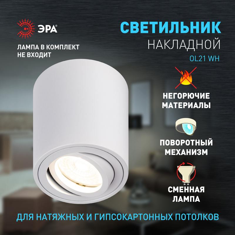 Характеристики Светильник настенно-потолочный спот ЭРА OL21 WH MR16/GU10, белый, поворотный: