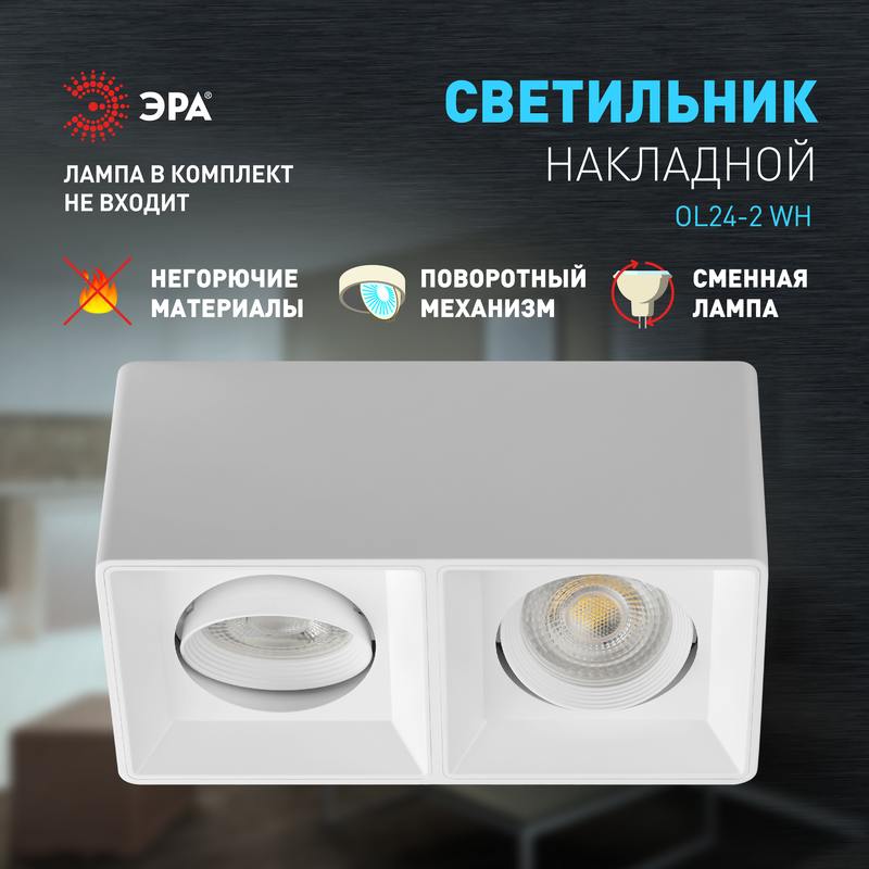 Характеристики Светильник настенно-потолочный спот ЭРА OL24-2 WH MR16/GU5.3, белый, поворотный: