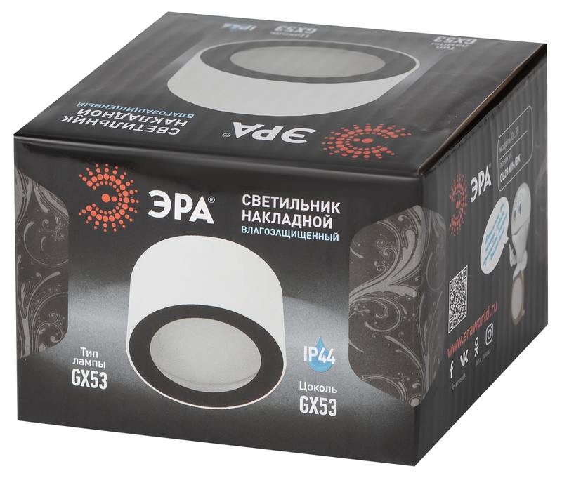 Характеристики Светильник настенно-потолочный спот ЭРА OL28 WH/BK GX53, черно-белый, IP44:
