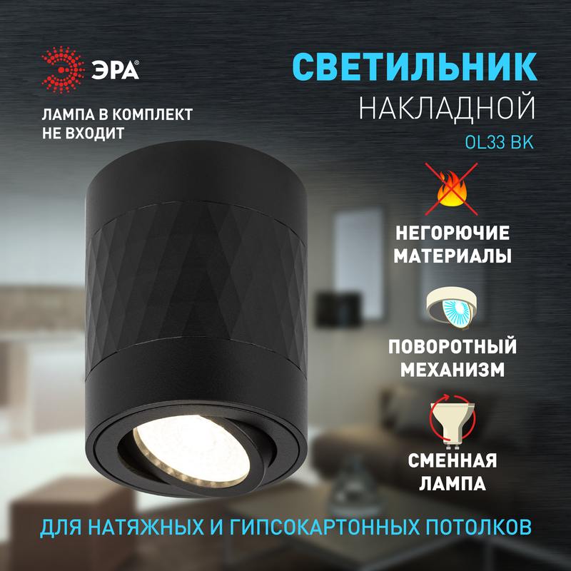 Характеристики Светильник настенно-потолочный спот ЭРА OL33 BK MR16 GU10 IP20 черный: