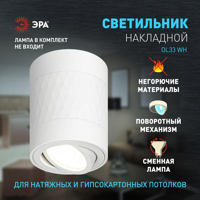 Характеристики Светильник настенно-потолочный спот ЭРА OL33 WH MR16 GU10 IP20 белый: