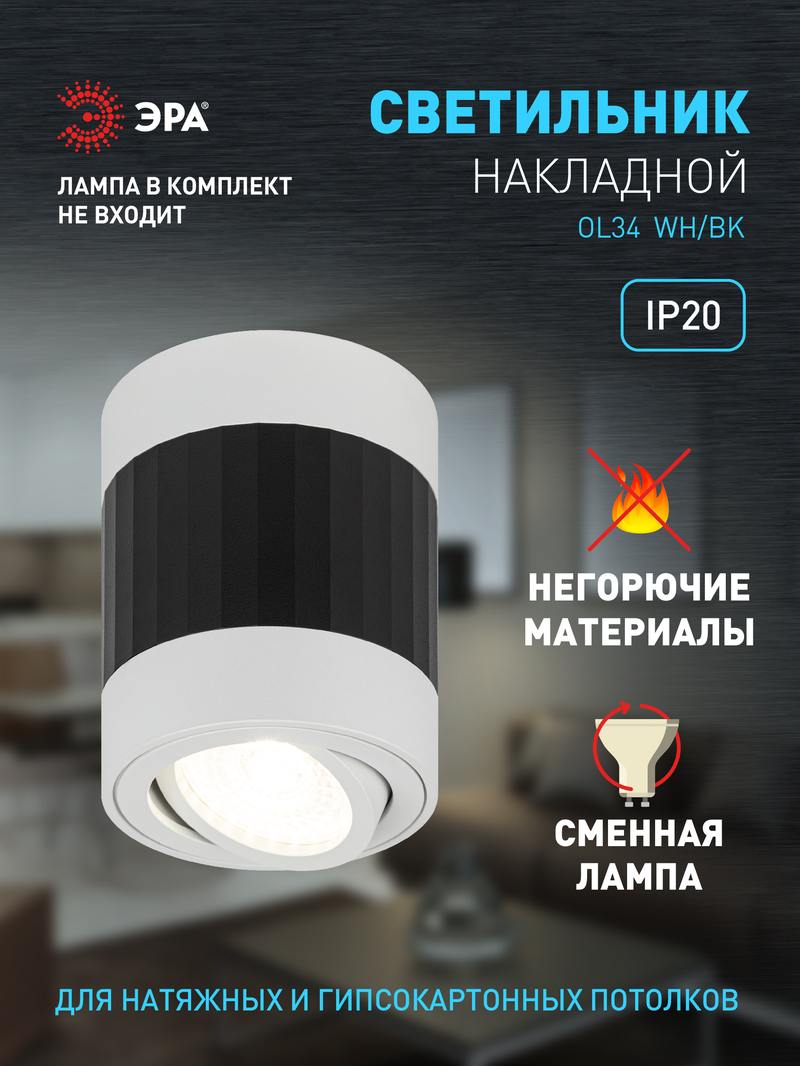 Характеристики Светильник настенно-потолочный спот ЭРА OL34 WH/BK MR16 GU10, черный, белый: