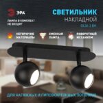 Накладной светильник ЭРА OL36-2 BK MR16 в черном цвете с двумя поворотными плафонами – это идеальное решение для создания акцентного освещения в вашем интерьере. Он является удачным вариантом для натяжных и гипсокартонных потолков. В качестве источника света применяется лампочка с цоколем GU10 и с максимальной мощностью 12Вт. Обращаем ваше внимание, лампа в комплект не входит. Потолочный спот предназначен для работы от настенного выключателя. Высота плафона 7 см, общая длина — 29 см, общая высота прибора — 15 см. Корпус изготовлен из прочных и долговечных материалов — металла и пластика. Степень защиты IP20 гарантирует безопасность использования встраиваемого светильника в помещениях с нормальными условиями влажности.
