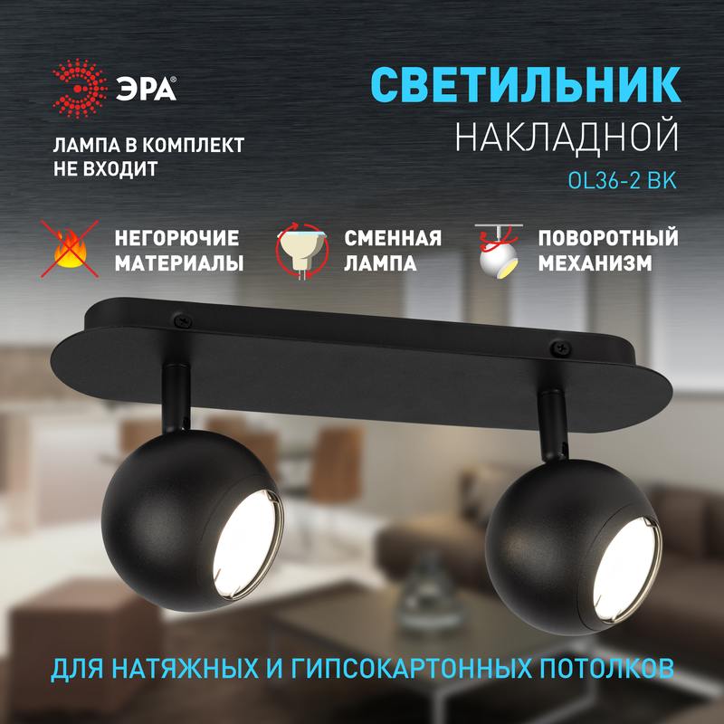 Характеристики Светильник настенно-потолочный спот ЭРА OL36-2 BK MR16 GU10 IP20 черный: