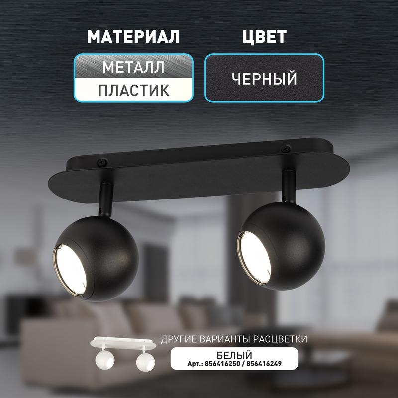 Накладной светильник ЭРА OL36-2 BK MR16 в черном цвете с двумя поворотными плафонами – это идеальное решение для создания акцентного освещения в вашем интерьере. Он является удачным вариантом для натяжных и гипсокартонных потолков. В качестве источника света применяется лампочка с цоколем GU10 и с максимальной мощностью 12Вт. Обращаем ваше внимание, лампа в комплект не входит. Потолочный спот предназначен для работы от настенного выключателя. Высота плафона 7 см, общая длина — 29 см, общая высота прибора — 15 см. Корпус изготовлен из прочных и долговечных материалов — металла и пластика. Степень защиты IP20 гарантирует безопасность использования встраиваемого светильника в помещениях с нормальными условиями влажности.
