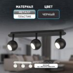 Характеристики Светильник настенно-потолочный спот ЭРА OL36-3 BK MR16 GU10 IP20 черный: