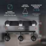 Накладной светильник ЭРА OL36-3 BK MR16 в черном цвете с тремя поворотными плафонами – это идеальное решение для создания акцентного освещения в вашем интерьере. Он является удачным вариантом для натяжных и гипсокартонных потолков. В качестве источника света применяется лампочка с цоколем GU10 и с максимальной мощностью 12Вт. Обращаем ваше внимание, лампа в комплект не входит. Потолочный спот предназначен для работы от настенного выключателя. Высота плафона 7 см, общая длина — 43 см, общая высота прибора — 15 см. Корпус изготовлен из прочных и долговечных материалов — металла и пластика. Степень защиты IP20 гарантирует безопасность использования встраиваемого светильника в помещениях с нормальными условиями влажности.