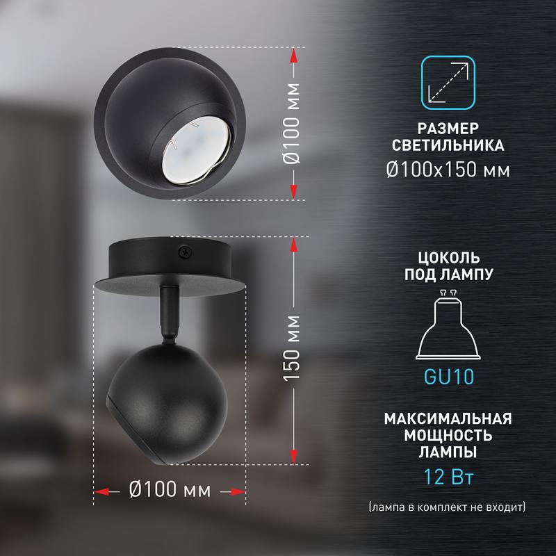 Характеристики Светильник настенно-потолочный спот ЭРА OL36 BK MR16 GU10 IP20 черный: