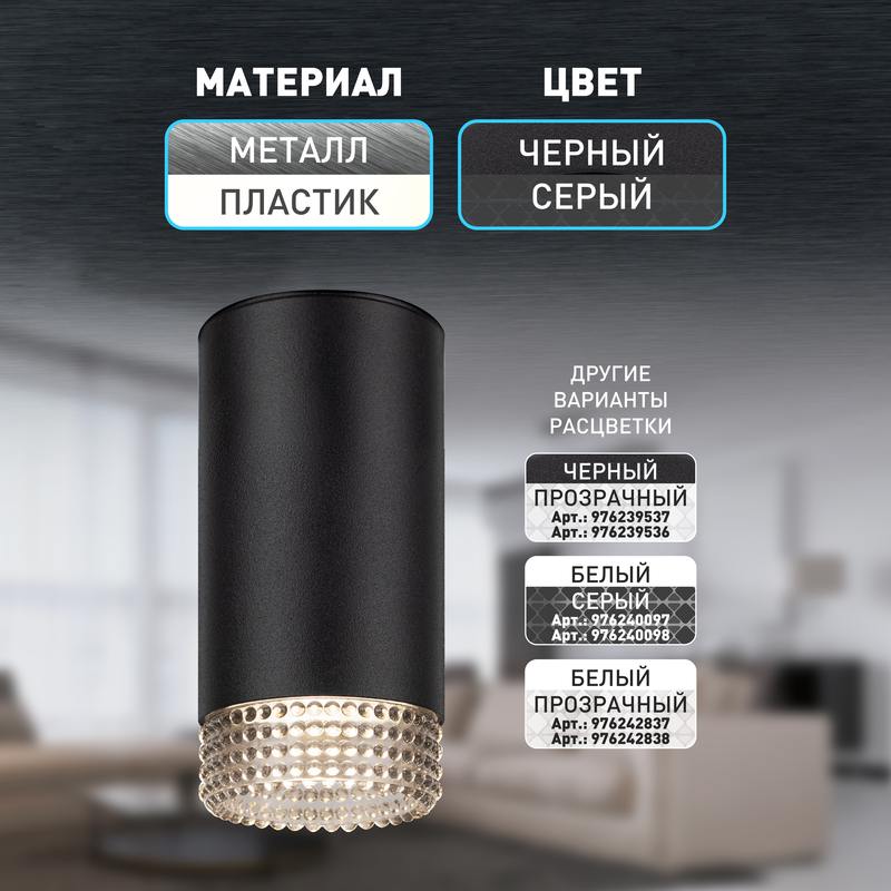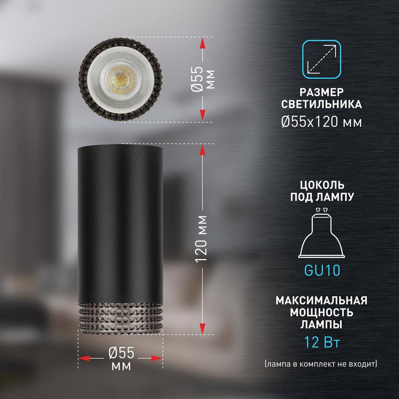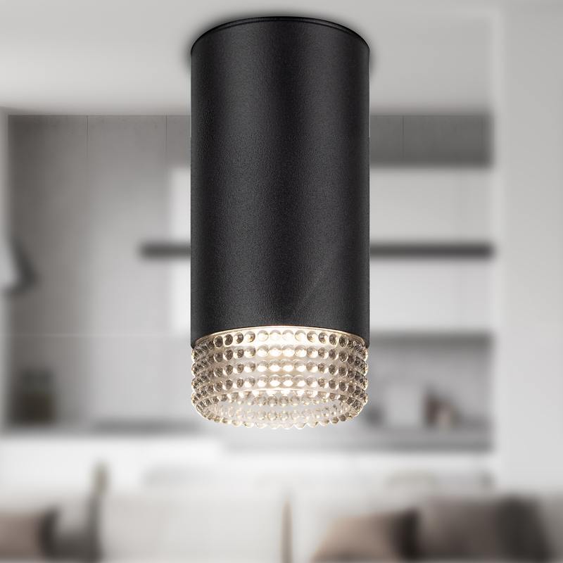 Накладной светильник OL40 BK/GR делает помещение зрительно более стильным и интересным. Используя по периметру несколько однотипных осветительных устройств, можно сформировать интеренсые световые геометрические рисунки. Цоколь для источника света GU10, напряжение питания ~230В 50/60Гц, материал металл, пластик, цвет светильника черный/серый, размер D55хH120мм, максимальная мощность лампы 12Вт, степень защиты IP20
