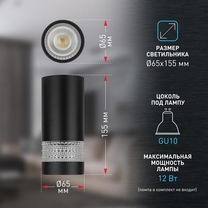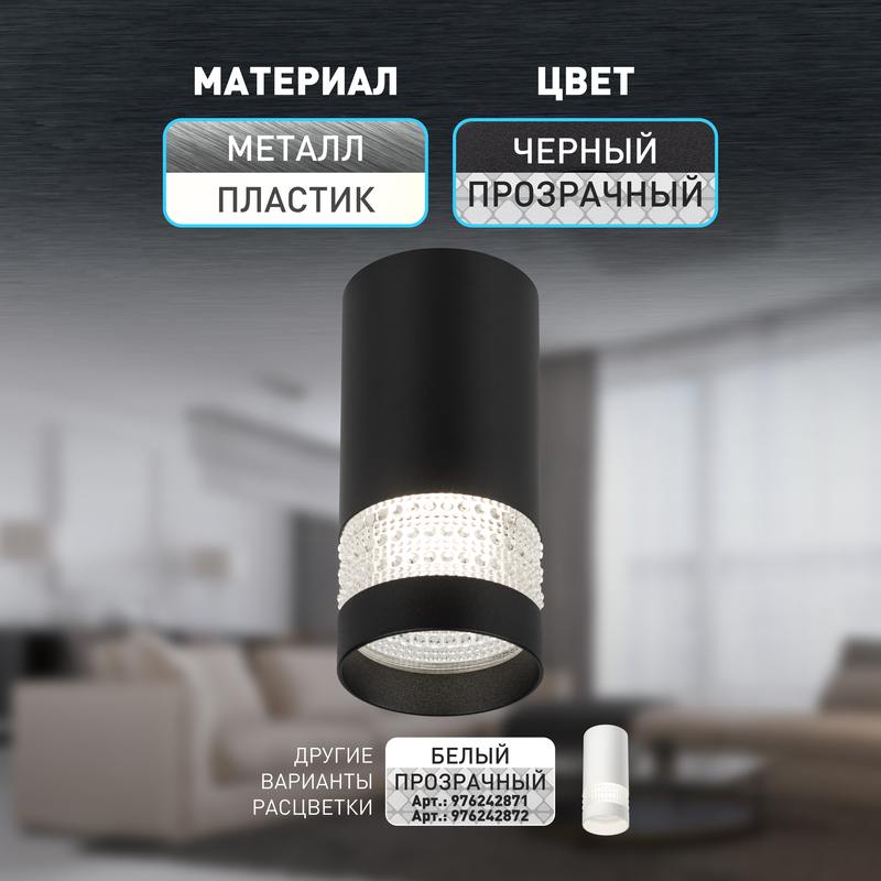 Накладной светильник OL41 BK/WH делает помещение зрительно более стильным и интересным. Используя по периметру несколько однотипных осветительных устройств, можно сформировать интеренсые световые геометрические рисунки. Цоколь для источника света GU10, напряжение питания ~230В 50/60Гц, материал металл, пластик, цвет светильника черный/белый, размер D65*H155, максимальная мощность лампы 12Вт, степень защиты IP20