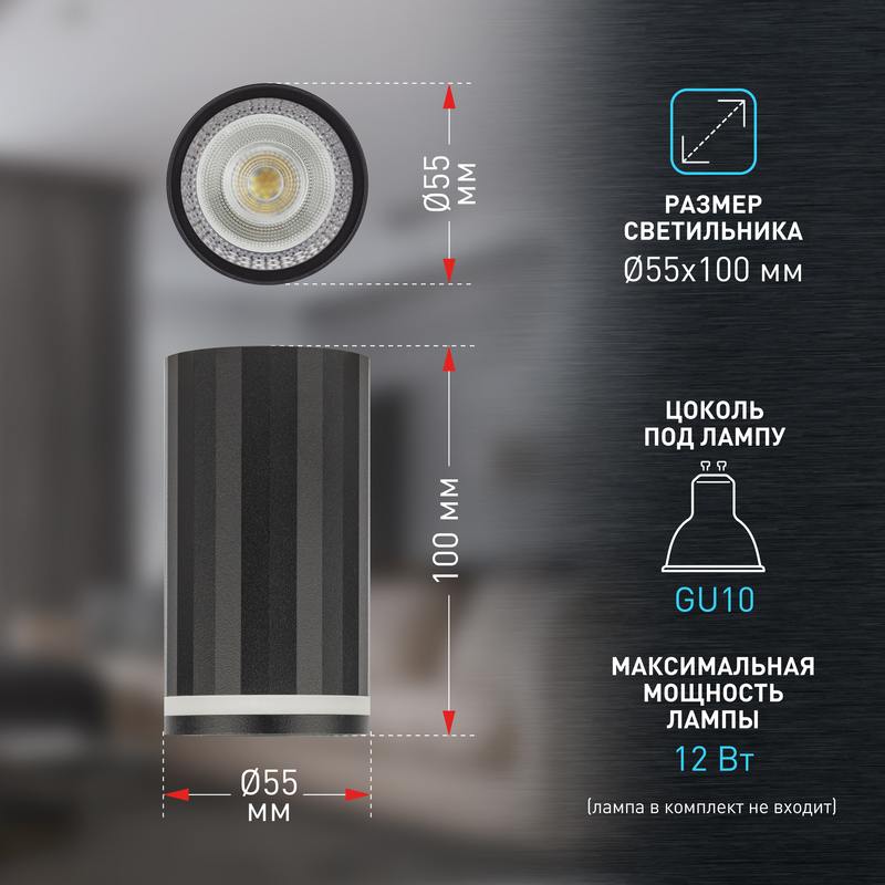 Накладной светильник OL42 BK делает помещение зрительно более стильным и интересным. Используя по периметру несколько однотипных осветительных устройств, можно сформировать интеренсые световые геометрические рисунки. Цоколь для источника света GU10, напряжение питания ~230В 50/60Гц, материал металл, пластик, цвет светильника черный, размер D55*H100, максимальная мощность лампы 12Вт, степень защиты IP20