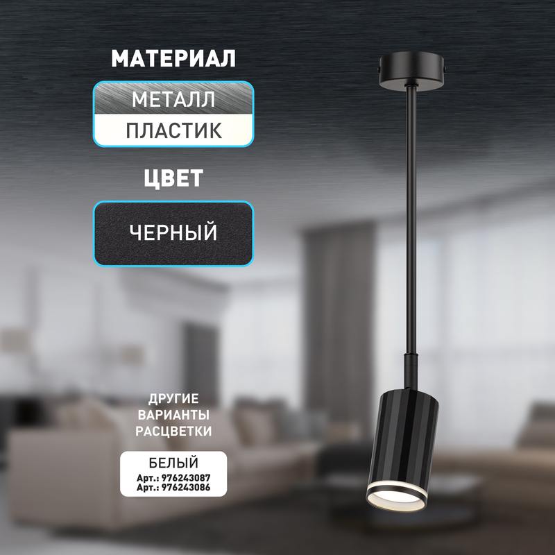 Накладной светильник OL43 BK делает помещение зрительно более стильным и интересным. Используя по периметру несколько однотипных осветительных устройств, можно сформировать интеренсые световые геометрические рисунки. Цоколь для источника света GU10, напряжение питания ~230В 50/60Гц, материал металл, пластик, цвет светильника черный, размер D55x425мм, максимальная мощность лампы 12Вт, степень защиты IP20