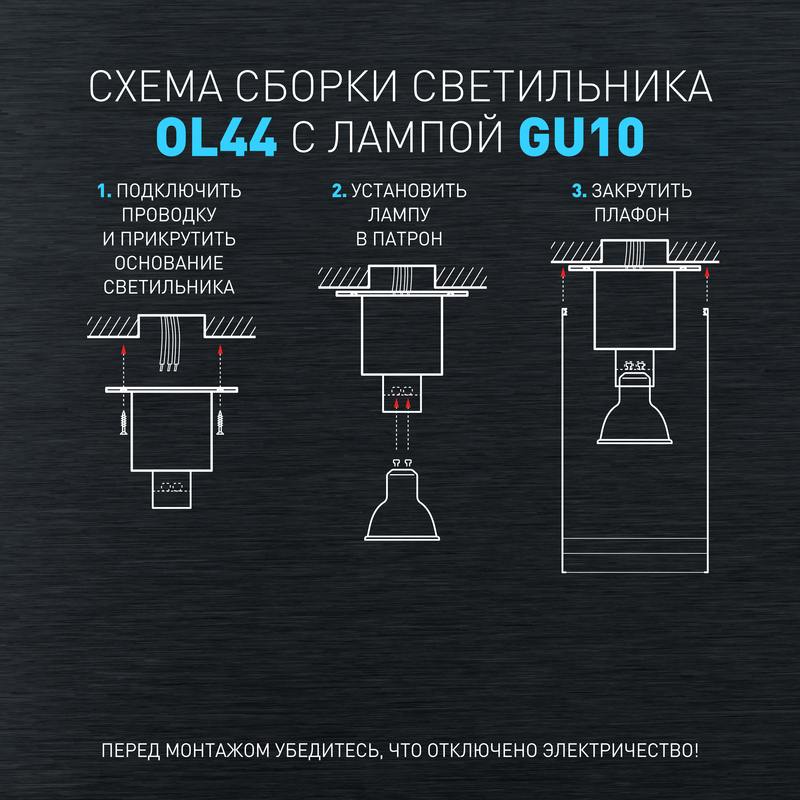 Накладной светильник OL44 BK делает помещение зрительно более стильным и интересным. Используя по периметру несколько однотипных осветительных устройств, можно сформировать интеренсые световые геометрические рисунки. Цоколь для источника света GU10, напряжение питания ~230В 50/60Гц, материал металл, цвет светильника черный, размер D55x100мм, максимальная мощность лампы 12Вт, степень защиты IP20