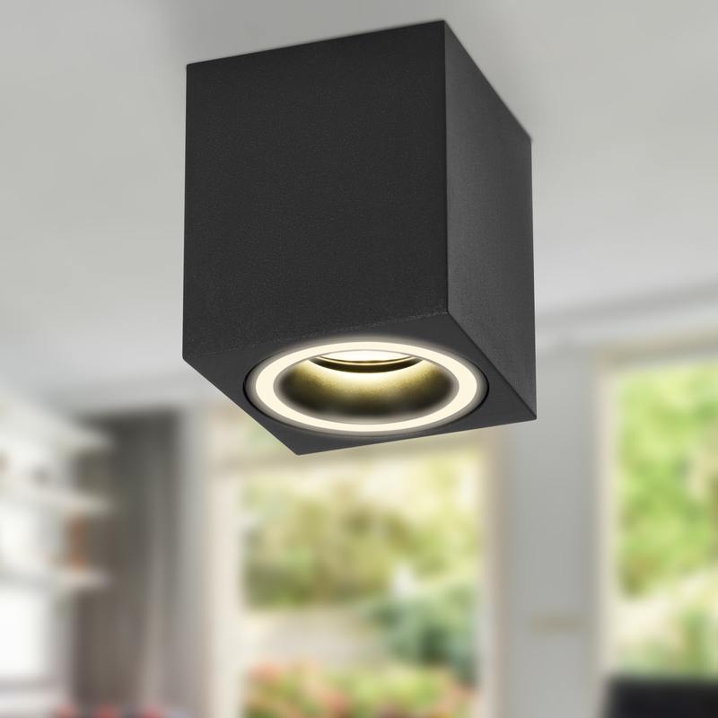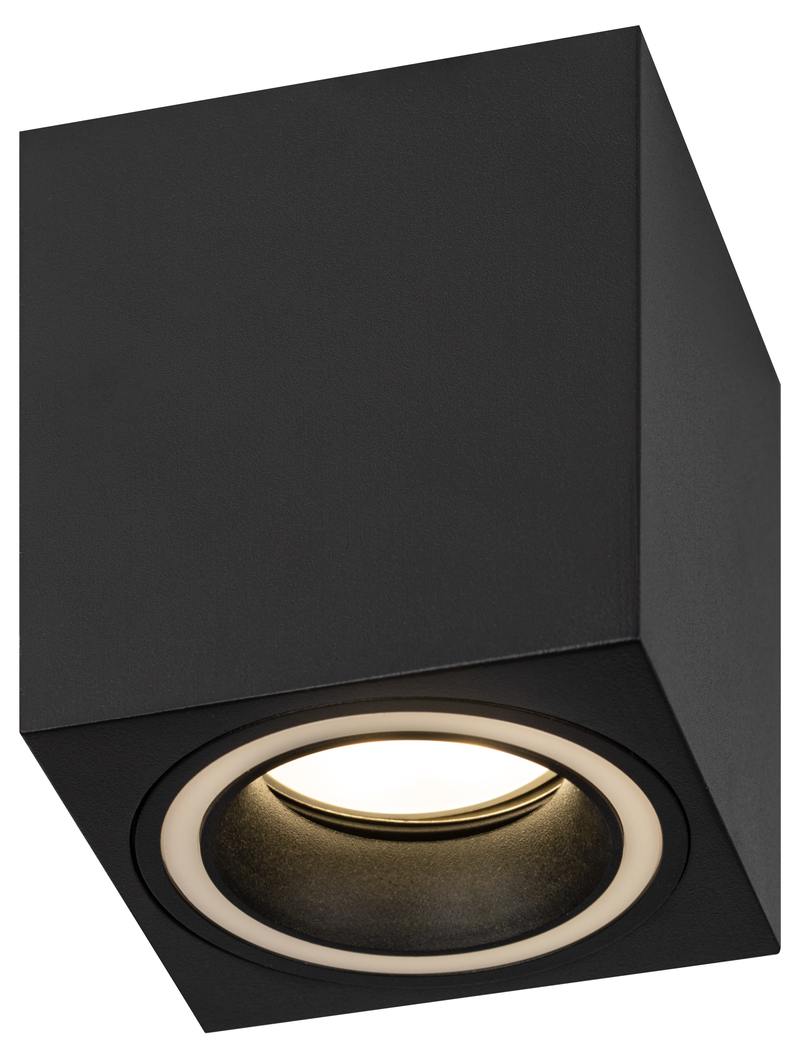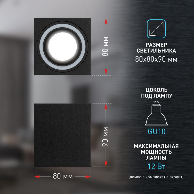 Накладной светильник OL46 BK делает помещение зрительно более стильным и интересным. Используя по периметру несколько однотипных осветительных устройств, можно сформировать интеренсые световые геометрические рисунки. Цоколь для источника света GU10, напряжение питания ~230В 50/60Гц, материал металл, цвет светильника черный, размер 80x80x90мм, максимальная мощность лампы 12Вт, степень защиты IP20