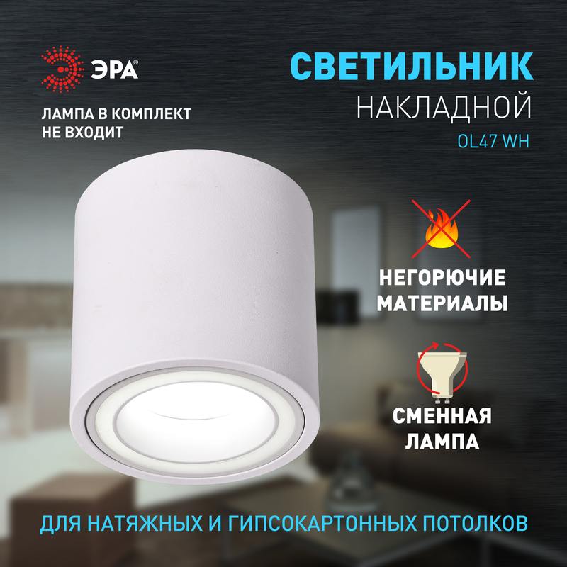 Характеристики Светильник настенно-потолочный спот ЭРА OL47 WH MR16 GU10 IP20 белый: