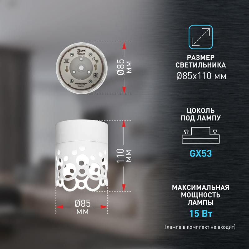 Характеристики Светильник настенно-потолочный спот ЭРА OL49 WH GX53 IP20 белый:
