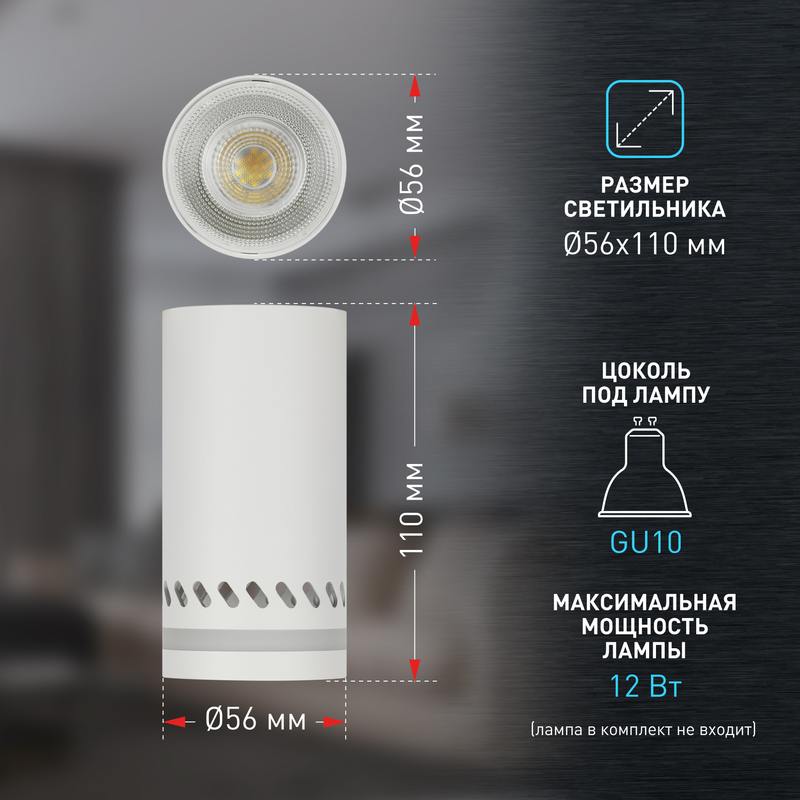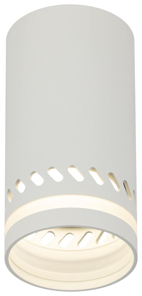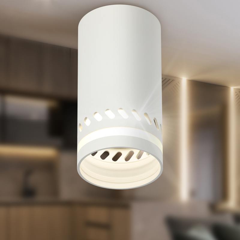 Накладной светильник OL50 WH делает помещение зрительно более стильным и интересным. Используя по периметру несколько однотипных осветительных устройств, можно сформировать интеренсые световые геометрические рисунки. Цоколь для источника света GU10, напряжение питания ~230В 50/60Гц, материал металл, цвет светильника белый, размер D80*H100мм, максимальная мощность лампы 12Вт, степень защиты IP20