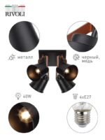 Характеристики Светильник настенно-потолочный спот Rivoli Acuto 7015-704 4 х Е27 40 Вт поворотный: