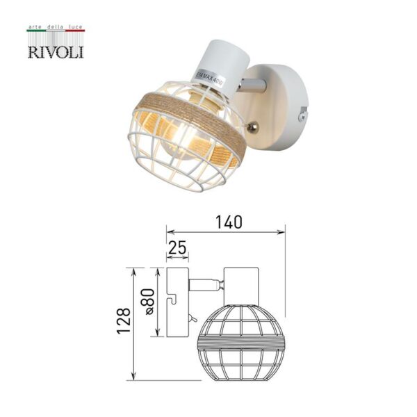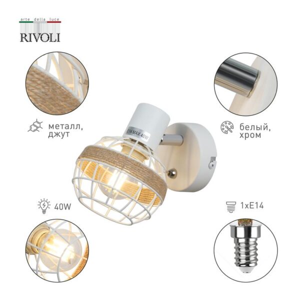 Характеристики Светильник настенно-потолочный спот Rivoli Anselma 7034-701 1 x E14 40 Вт поворотный с выключателем: