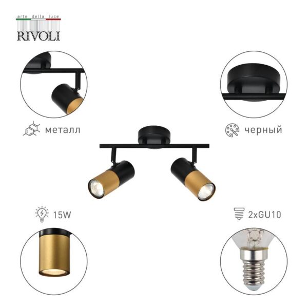 Характеристики Светильник настенно-потолочный спот Rivoli Belladonna 7073-702 2 х GU10 15 Вт поворотный: