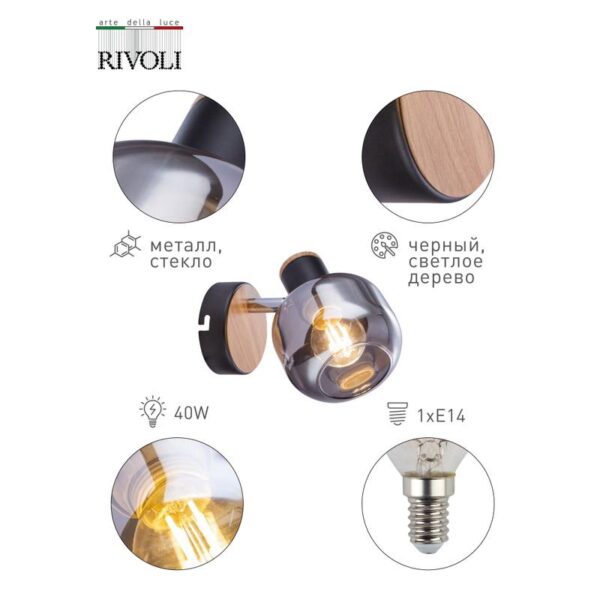 Характеристики Светильник настенно-потолочный спот Rivoli Dorkas 7026-701 1 х E14 40 Вт поворотный уценка: