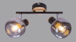 Броский дизайн этих светильников достигается сочетанием контрастных оттенков затемнённых выдувных плафонов и тёмного металлического каркаса с декоративными элементами из светлого дерева. Споты оснащены долговечными поворотными механизмами высокого качества с надёжной фиксацией. Коллекция представлена настенно-потолочным светильником на 2 лампы.