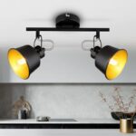 Rivoli Evelyn — настенно-потолочный спот с 2 трендовыми металлическими плафонами. Внешняя сторона плафонов имеет черное матовое покрытие, внутренняя — покрытие золотого цвета. Настенно-потолочные светильники Evelyn отличаются поворотной конструкцией плафонов, позволяющей индивидуально регулировать направление светового потока каждого плафона. В коллекции представлены споты поворотные под 1 лампу (арт. 7064-701), споты поворотные под 2 лампы (арт. 7064-702), споты поворотные под 3 лампы (арт. 7064-703), споты поворотные под 4 лампы (арт. 7064-704). Рекомендуемые источники света — Е14 мощностью 40 Вт. Размер данного настенно-потолочного спота под 2 лампы — 250*97*140 мм. Это прекрасное интерьерное решение для популярного стиля лофт. Освещаемая площадь — 6 м². Настенно-потолочный спот из металла — прочный и надежный. Выглядит очень стильно. Благодаря гальванизации окрашивания защищен от царапин и выцветания. Спешите купить!