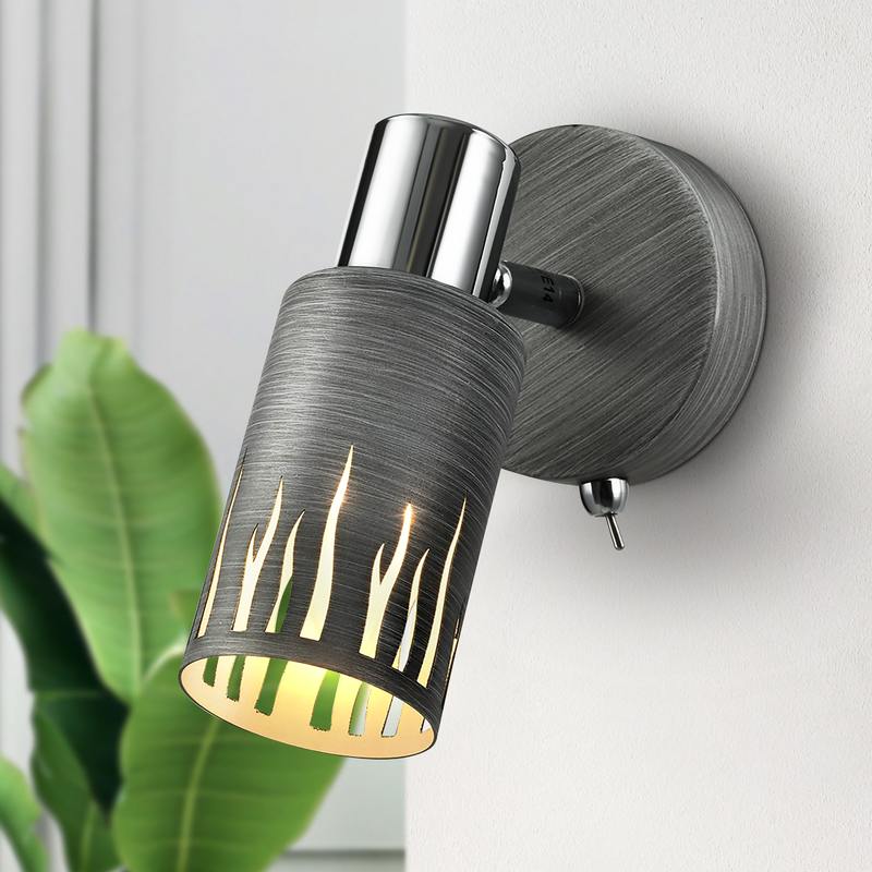 Спот настенный Rivoli Lethe (арт. 3123-401) под лампу Е14 мощностью 40 Вт. Настенные светильники Lethe Rivoli с выключателем на корпусе изготовлены из металла, окрашены в трендовый серый цвет, имеют хромированные элементы. На металлическом плафоне бра эффектная перфорация в экостилистике. Настенные светильники Lethe от итальянского бренда Rivoli — удачное решение для организации дополнительного освещения в интерьерах стиля лофт, модерн, кантри, ретро, экостиль. Хорошо смотрятся эти бра на бетонной стене, стене в светлых оттенках, на черной стене. Серо-серебристая цветовая гамма спотов поворотных Lethe универсальна и отлично вписывается в самые разные пространства. Освещаемая площадь бра — 3 м2. Габариты бра — 170*90*150 мм.