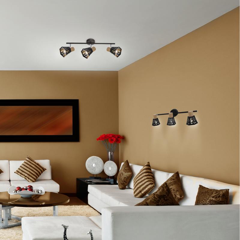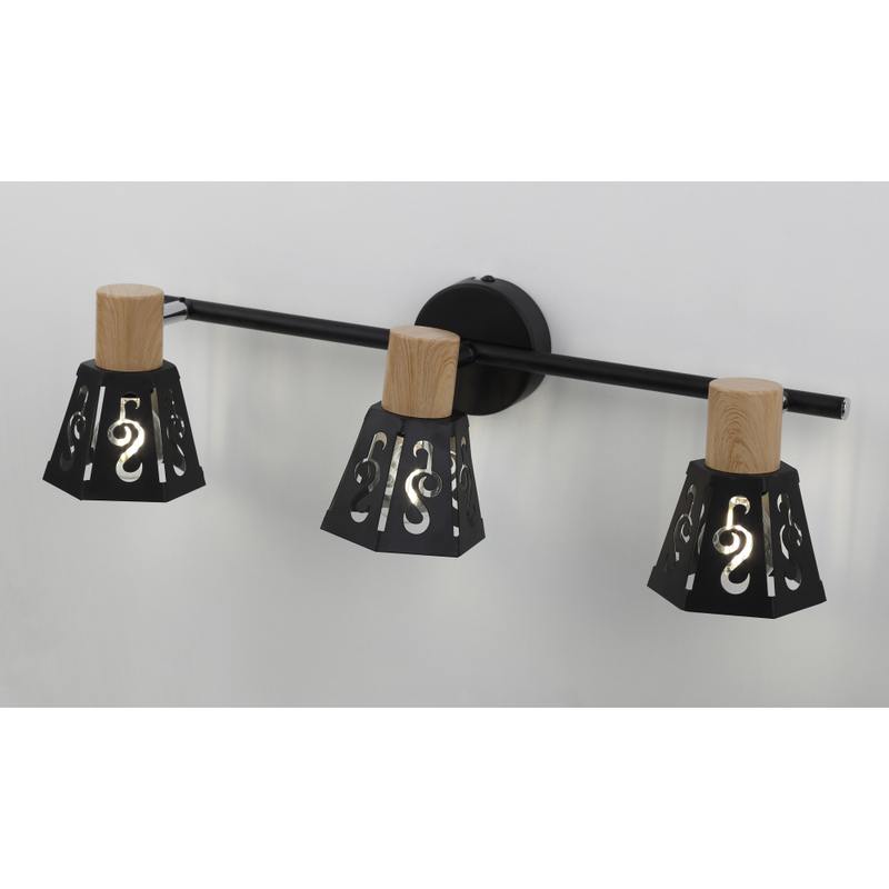 "Notabile" в переводе с итальянского "знаменитый". Все верно, эти споты не остануться не замеченными! Элегантное комбинирование материалов: черный и натуральное дерево — все это на пике популярности. А включив свет вы насладитесь музыкой света, льющейся через узоры, похожие на скрипичные ключи. Коллекция представлена светильником на 3 лампы.