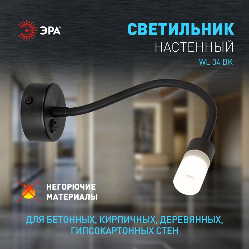 Характеристики Светильник настенный ЭРА WL 34 BK 3Вт IP20 черный: