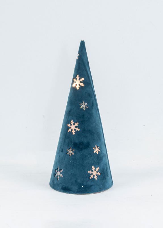 Настольный светильник «ЕЛОЧКА» KOC_TAB-B106. Коллекция настольных елочек Космос — это не традиционные новогоднии деревья, а модное украшение и настольный светильник. Высота конуса 25см и 9см в диаметре у основания. Синяя и бархатная елочка, снаружи с вырезами для 8 светодиодов, окутает помещение теплым белым светом. Елочка-конус украсить собой новогодний стол, любую полочку или подоконнник, вернет в детство, где повсюду были напоминания о любимом празднике. работает от батреек АА.