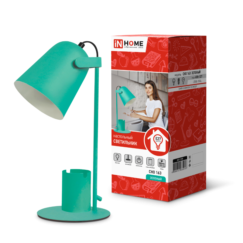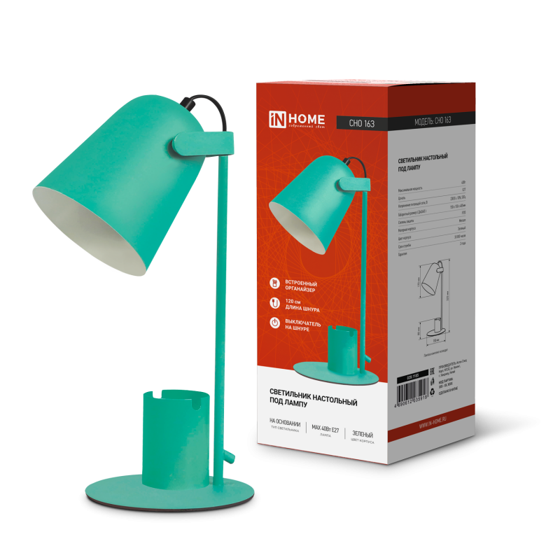 Характеристики Светильник настольный под лампу на основании СНО 16З 40Вт E27 230В с органайзером ЗЕЛЕНЫЙ IN HOME: