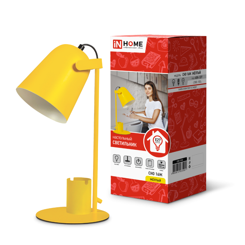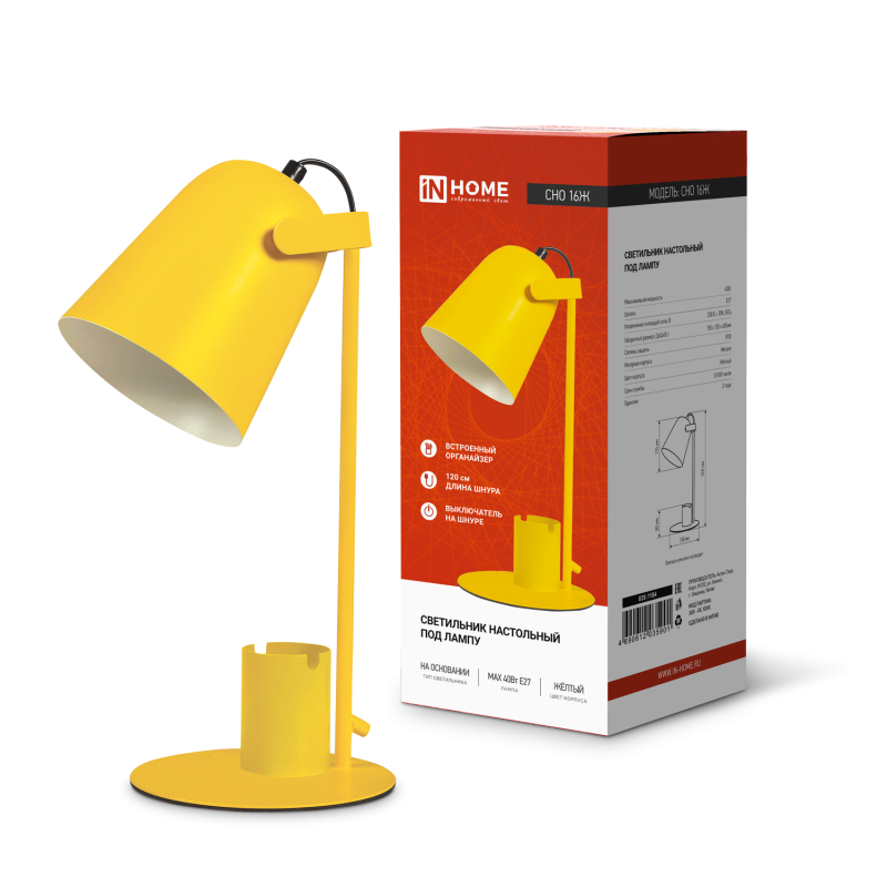 Характеристики Светильник настольный под лампу на основании СНО 16Ж 40Вт E27 230В с органайзером ЖЕЛТЫЙ IN HOME: