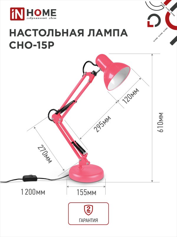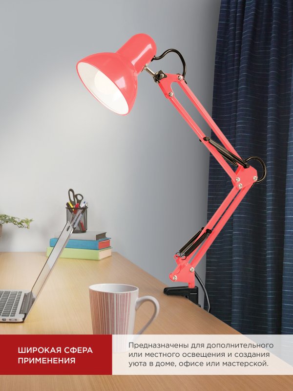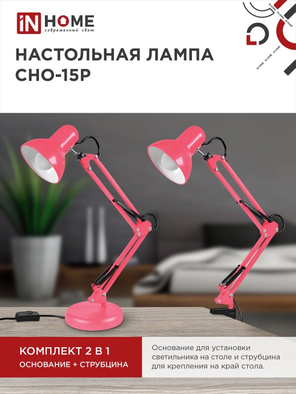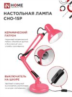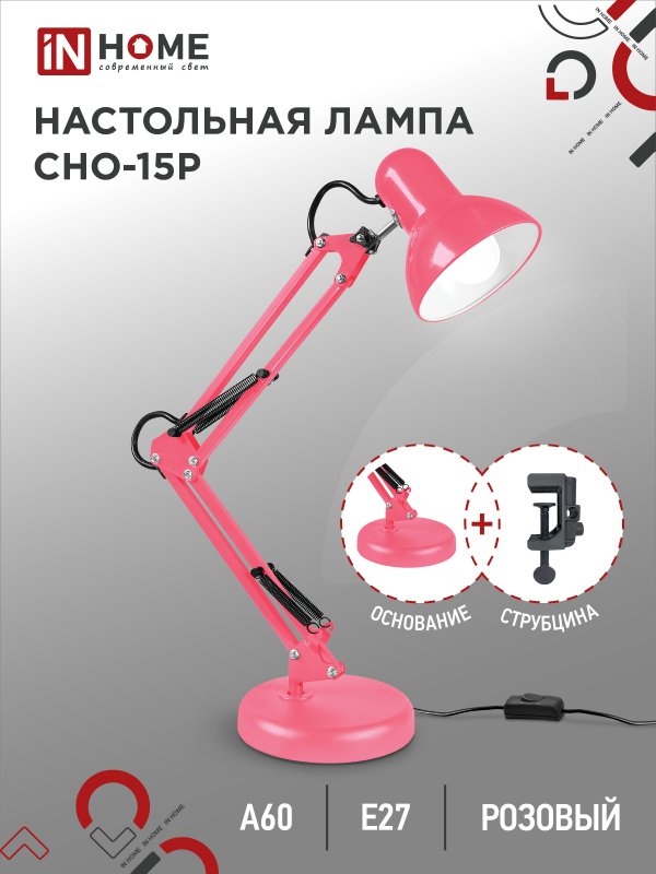 Характеристики Светильник настольный под лампу на основании + струбцина СНО 15Р 60Вт E27 230В РОЗОВЫЙ IN HOME: