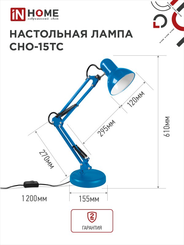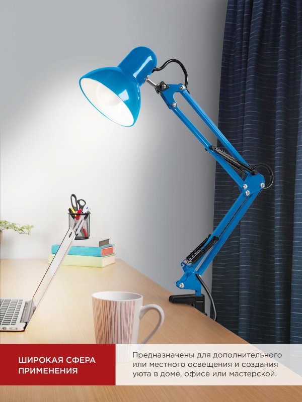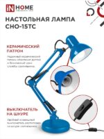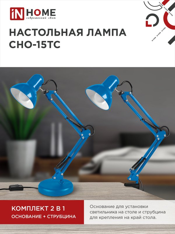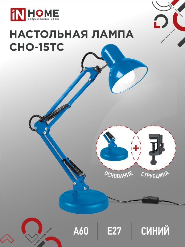 Характеристики Светильник настольный под лампу на основании + струбцина СНО 15ТС 60Вт E27 230В СИНИЙ IN HOME: