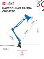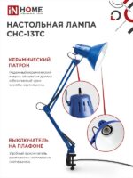 Характеристики Светильник настольный под лампу на струбцине СНС 13ТС 60Вт E27 230В СИНИЙ IN HOME: