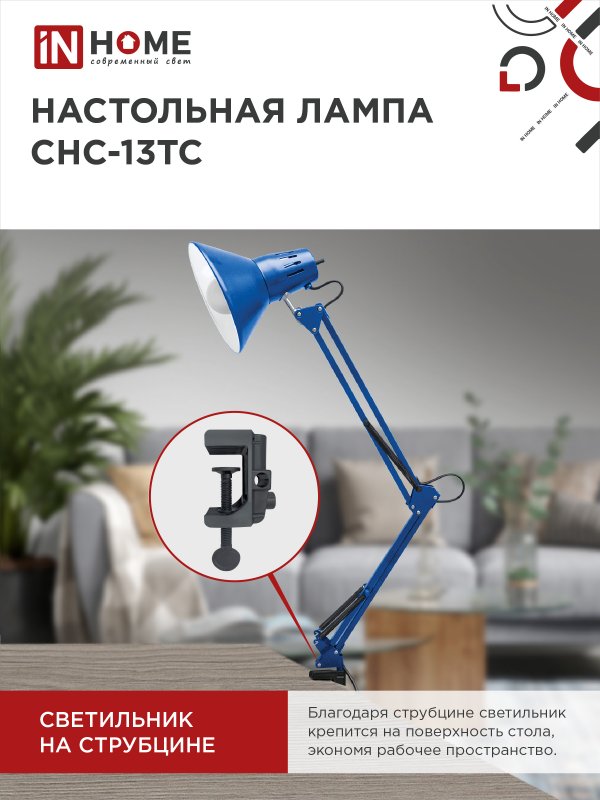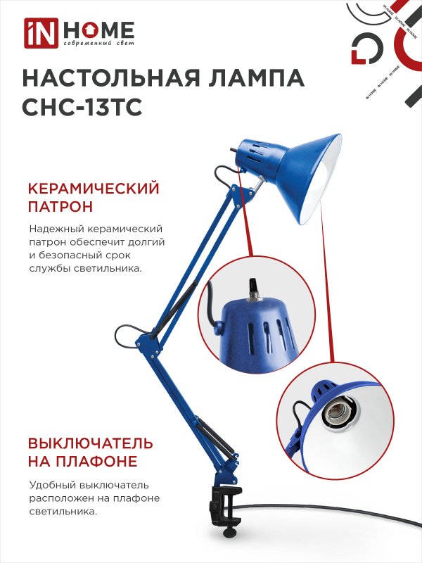 Характеристики Светильник настольный под лампу на струбцине СНС 13ТС 60Вт E27 230В СИНИЙ IN HOME: