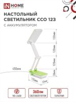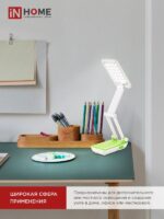 Характеристики Светильник настольный светодиодный аккумуляторный ССО 12З 6Вт 6500К 360Лм 2 уровня яркости 230В ЗЕЛЕНЫЙ IN HOME: