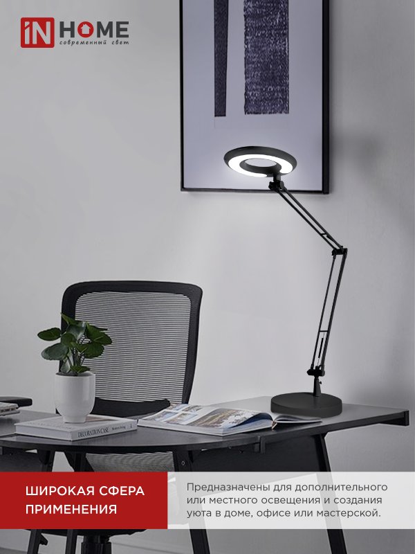 Характеристики Светильник настольный светодиодный CRAFT ССО-17Ч 10Вт 6500К 700Лм с оптическим фильтром, с адаптером ЧЕРНЫЙ IN HOME: