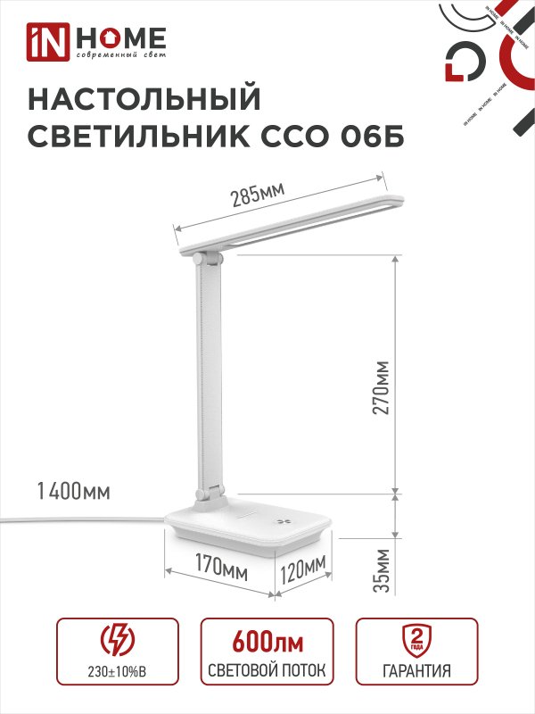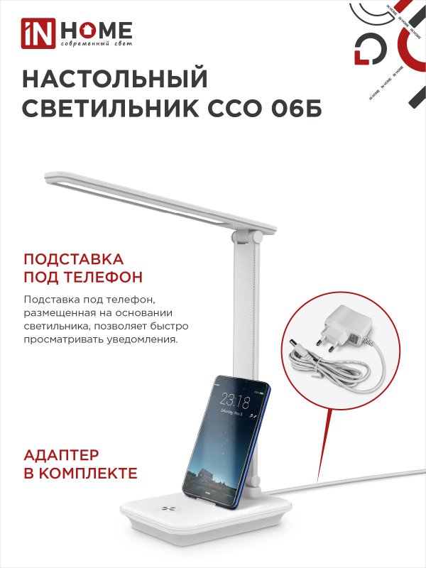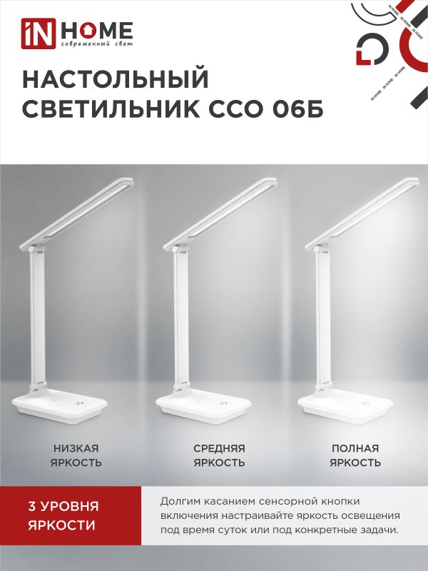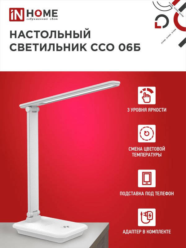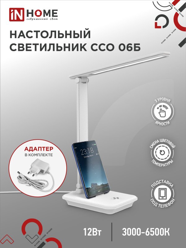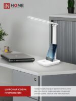 Назначение и применение Светильник настольный светодиодный SIMPLE ССО-06Б 12Вт 600Лм сенсор, с подставкой под телефон, адаптер БЕЛЫЙ IN HOME