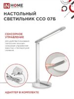Характеристики Светильник настольный светодиодный SIMPLE ССО-07Б 12Вт 600Лм сенсор, адаптер БЕЛЫЙ IN HOME: