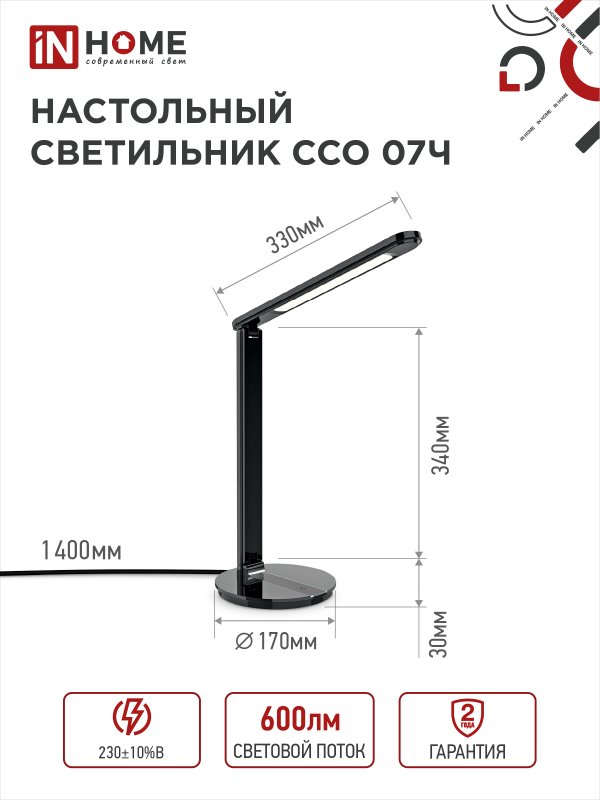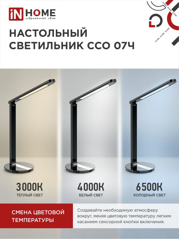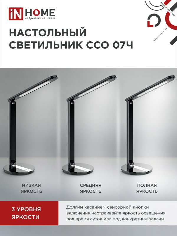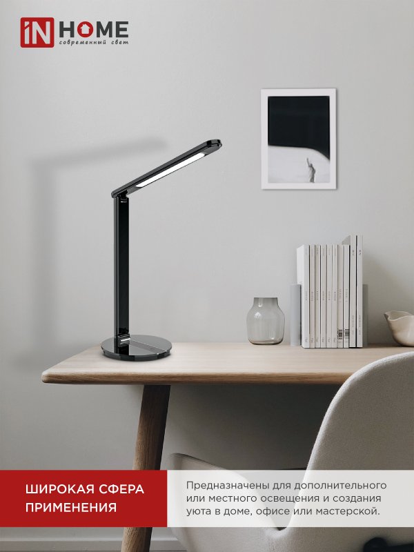 Назначение и применение Светильник настольный светодиодный SIMPLE ССО-07Ч 12Вт 600Лм сенсор, адаптер ЧЕРНЫЙ IN HOME