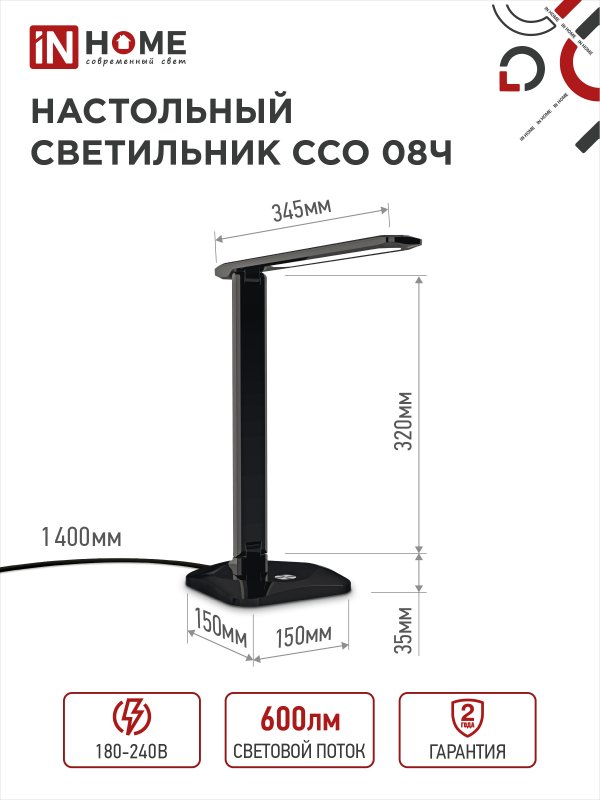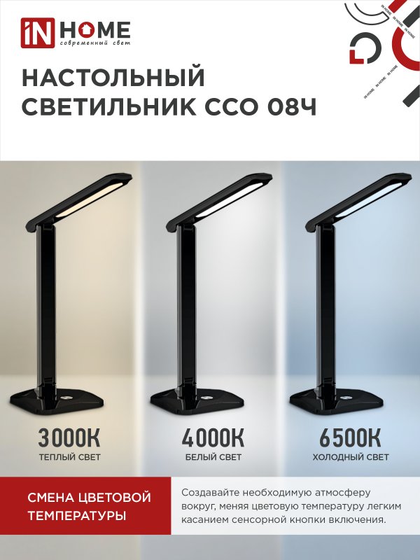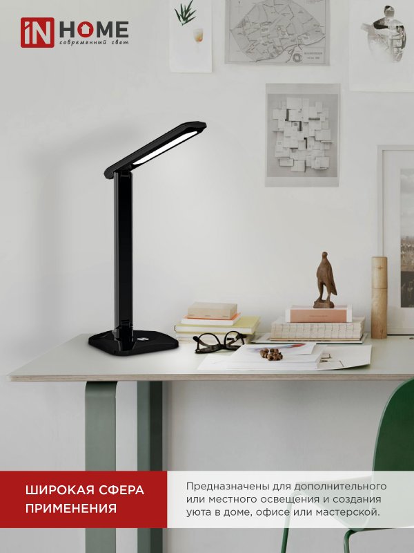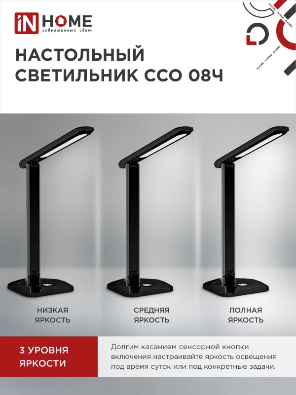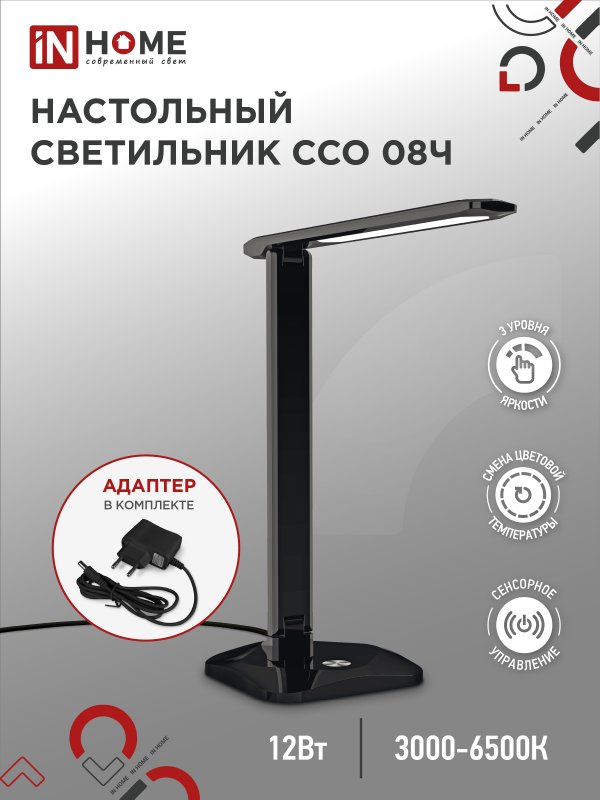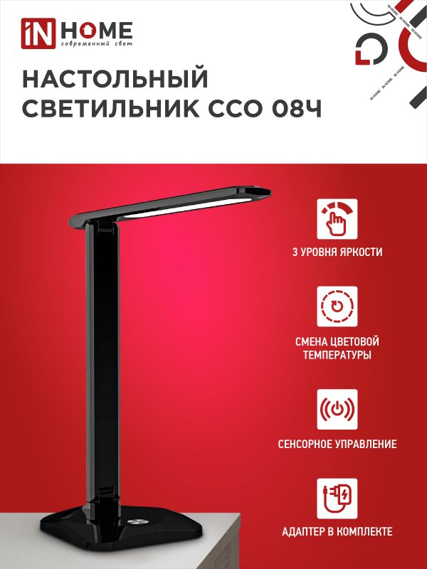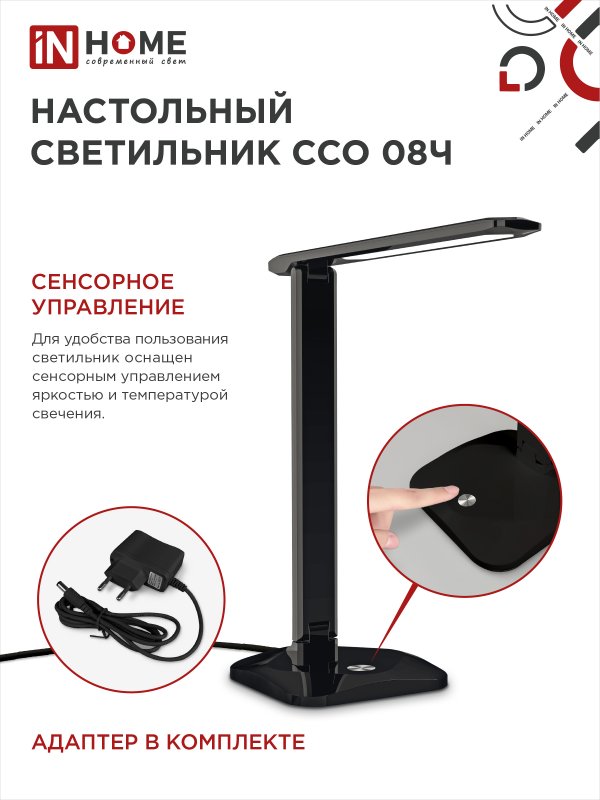Назначение и применение Светильник настольный светодиодный SIMPLE ССО-08Ч 12Вт 600Лм сенсор, адаптер ЧЕРНЫЙ IN HOME