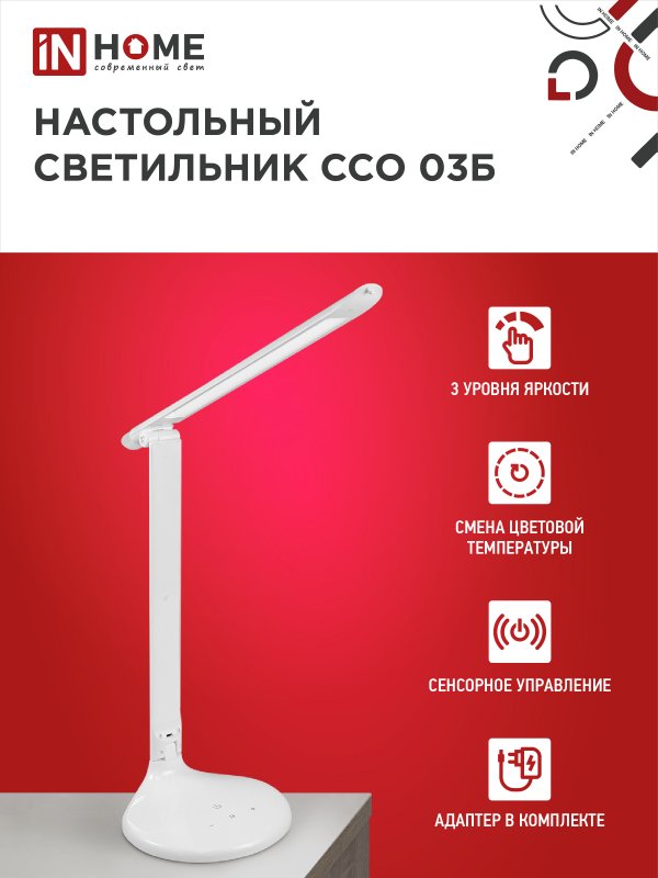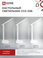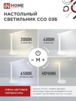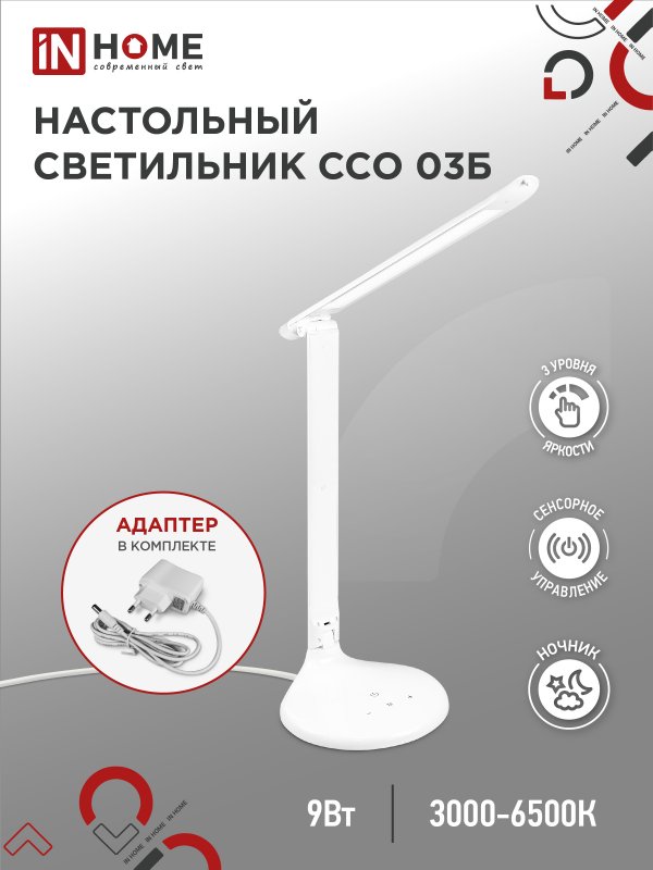 Характеристики Светильник настольный светодиодный ССО 03Б 9Вт сенсор-диммер ночник адаптер БЕЛЫЙ IN HOME: