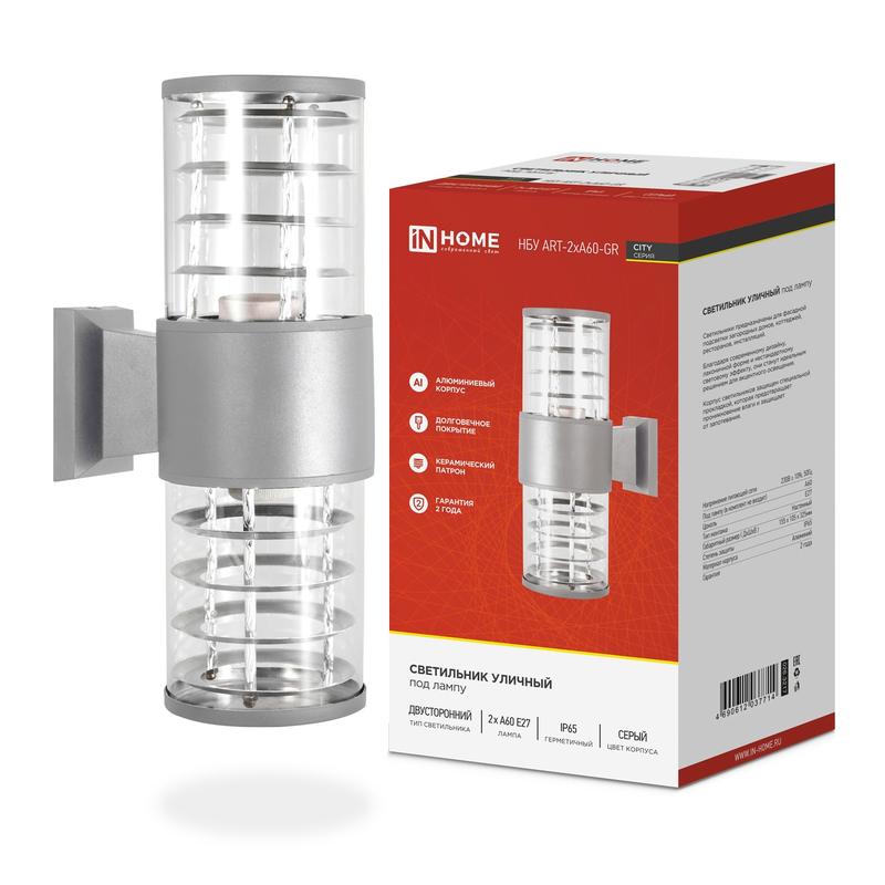 Характеристики Светильник уличный настенный двусторонний НБУ ART-2хA60-GR алюминиевый под лампу 2хA60 E27 серый IP54 IN HOME: