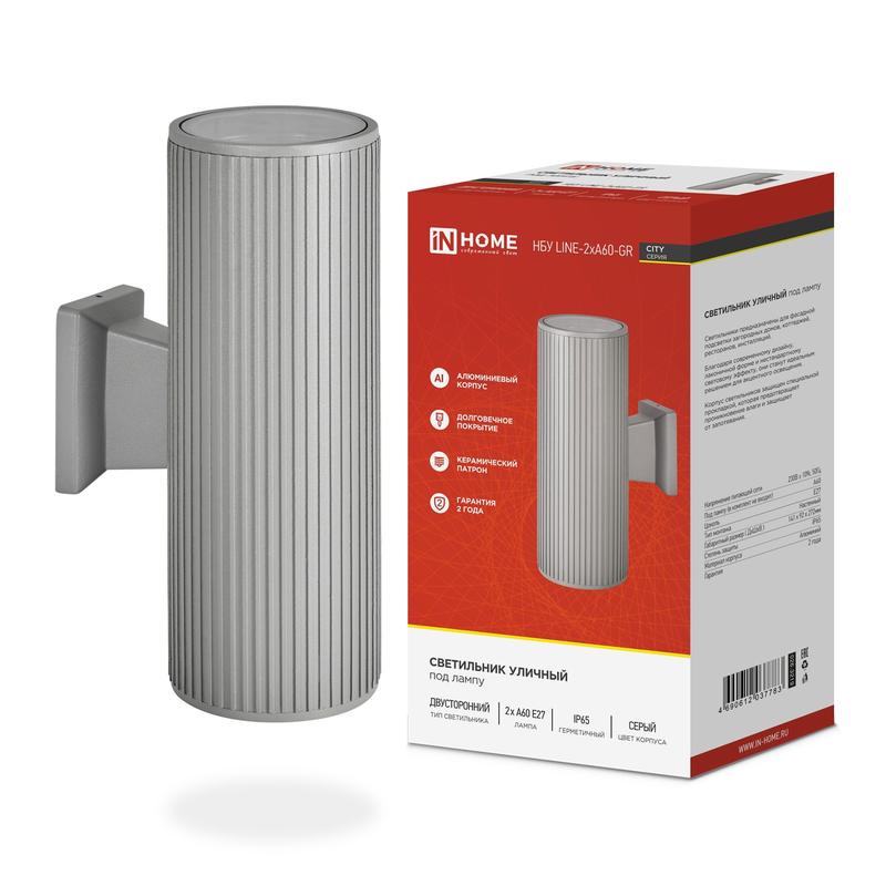 Характеристики Светильник уличный настенный двусторонний НБУ LINE-2хA60-GR алюминиевый под лампу 2хA60 E27 серый IP54 IN HOME: