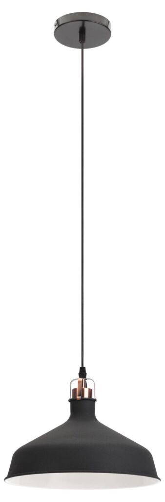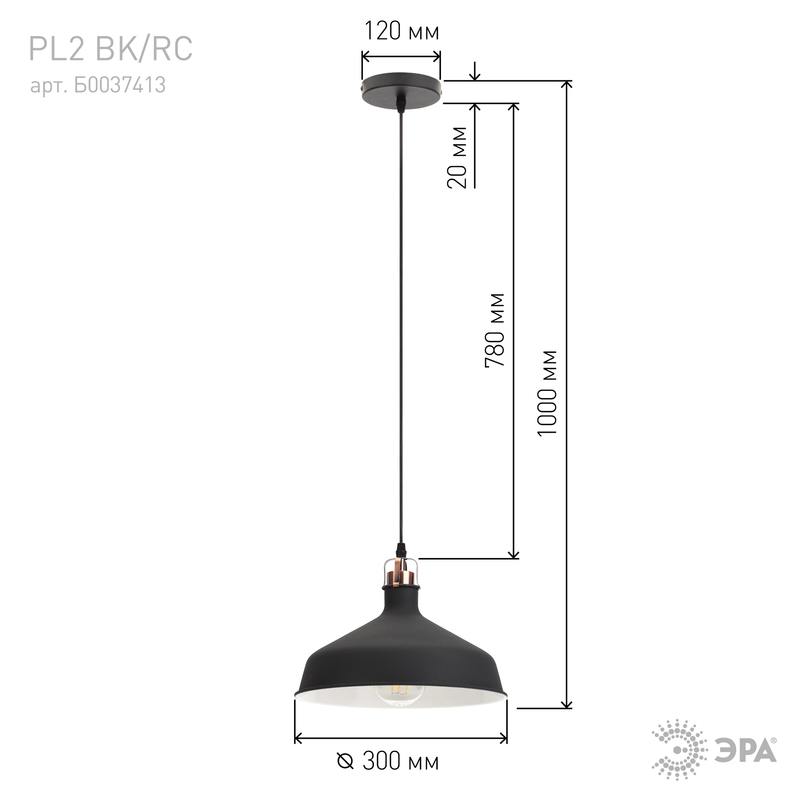 Характеристики Светильник подвесной (подвес) ЭРА PL2 BK/RC металл, E27, max 60W, высота плафона 200мм, подвеса 780мм, черный/медь: