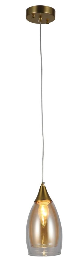 Подвесной светильник Rivoli Aileen (арт. 3193-201) под лампу Е27 40 Вт. Светильник потолочный подвесной выполнен в стиле лофт-кантри. Цвет основания и металлической части плафона – латунь. Плафон двухчастный: внутренний из тонированного стекла, внешний – прозрачный. Высота подвеса светильника регулируется. Подвесные светильники с регулировкой длины троса могут применяться с потолками любой высоты и в пространствах любой площади. Один такой светильник освещает до 3 м2. Часто подвесные светильники на тросах монтируются в составе из нескольких штук. Двухцветный плафон придаёт светильнику-люстре оригинальный внешний вид как в выключенном, так и во включённом состоянии.